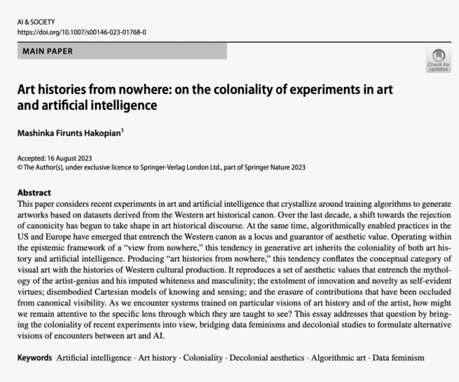 Art Histories from Nowhere: On the Coloniality of Experiments in Art and Artificial Intelligence
